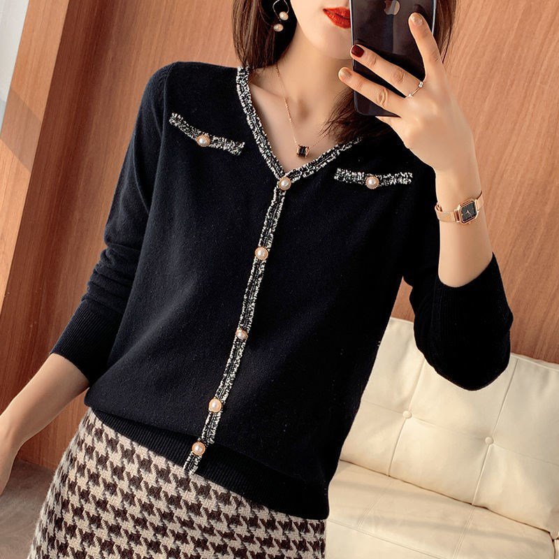 カシミヤ、Vネック、カーディガン、ニット、シンプル、パールボタン、柔らかい、暖かい、縁取りデザイン、痩せ見え、体型カバー