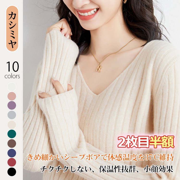 【Vネックカシミヤニット】快適、チクチクしない、保温性抜群、小顔効果、コーデしやすい