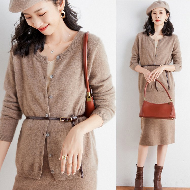 【カシミヤクルーネックカーディガン】高品質なカシミヤ素材を採用、快適、エレガント、高品質、ソフト、通気吸湿!