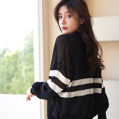 【アイスシルクUVカットパーカー】接触冷感、通気性抜群、伸縮性がある、ストライプ柄、コーデしやすい
